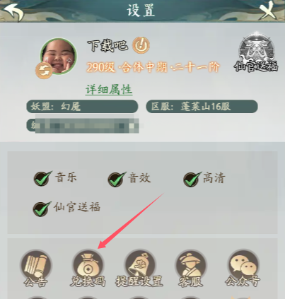 2、在设置页面中你可以找到下图位置的【兑换码】,点击进入兑换页面。