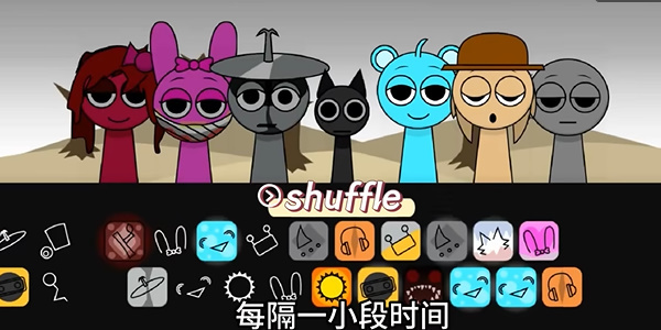 3、最后一个是隐藏角色【节拍器】,输入【shuffle】,之后每个一段时候就会有角色变化,服饰也会随之改变,最后中间的角色会变成节拍器哦!