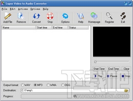 Super Video to Audio Converter是一个从视频中提取音频的工具,支持从AVI、MPEG、VOB、WMV/ASF、DAT、RM/RMVB、MOV 格式的视频文件提取出音频,保存成MP3、WAV、WMA或是OGG格式的音频文件。