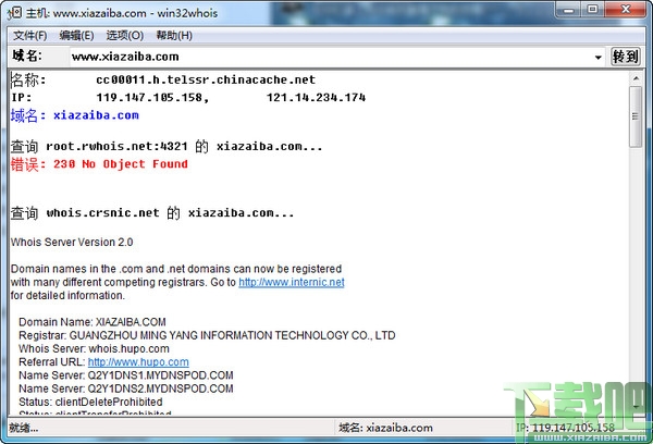 Win32Whois是一个小巧好用的域名查询工具。它内置了许多域名查询网站,只要你输入域名或网站地址,就可以查询域名或网站的注册信息,包括注册地址、注册人等,使用起来非常方便。