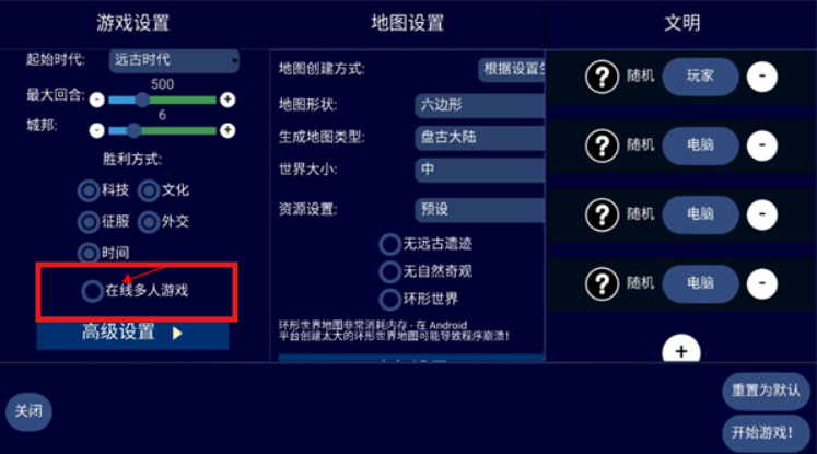 2、在游戏设置选项下将在线多人游戏勾选上。