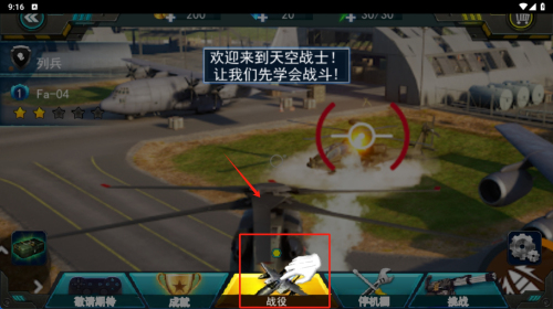1、在战斗机选择界面,选择一架战斗机。