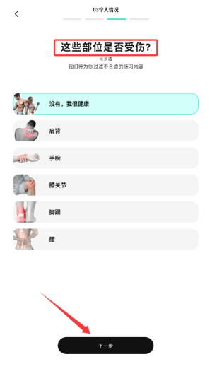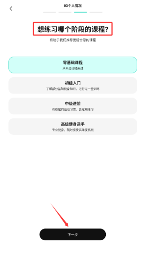 1、注册时完成体能评估问卷,包括运动基础、可用器械等信息,获取初始计划。