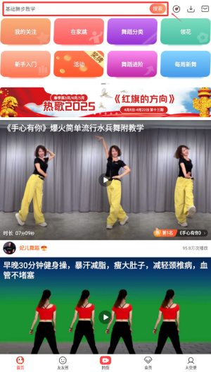 1、打开糖豆,进入界面可以搜索需要学习的舞蹈或者在大厅学习。