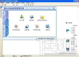 基础资料(客户信息、设备信息、设备丢损收费标准、设备类型设置、品牌设置、丢损类型设置、计量单位),合同管理(租赁合同、合同结束、到期合同清单),租赁管理(租出登记、归还登记、丢赔登记、未还数量查看),入库管理(设备初期入库、设备入库、归还入库、修复入库),库存管理(库存明细,库存查询),财务管理(租金统计,客户缴费登记,客户缴费查询,客户缴费统计,欠款统计)。