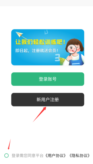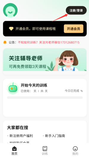 1、打开弱视训练工具箱APP,进入界面点右上角注册登录。