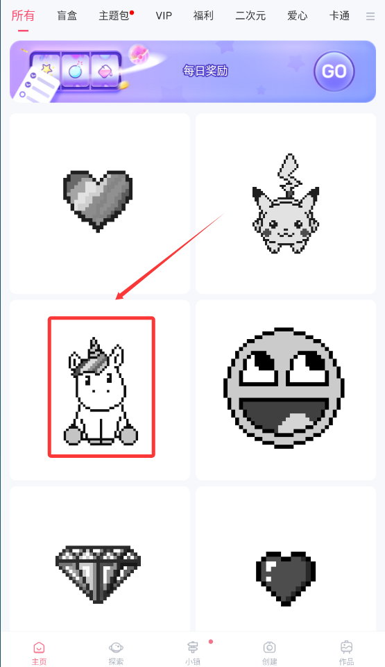1、刚安装好游戏要先选张喜欢的画呢,在主页能看到各种类型的线稿,挑个顺眼的开始涂色就好。