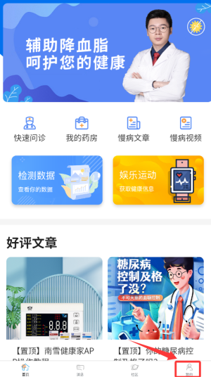 1、打开南雪健康家APP,进入界面点击我的。