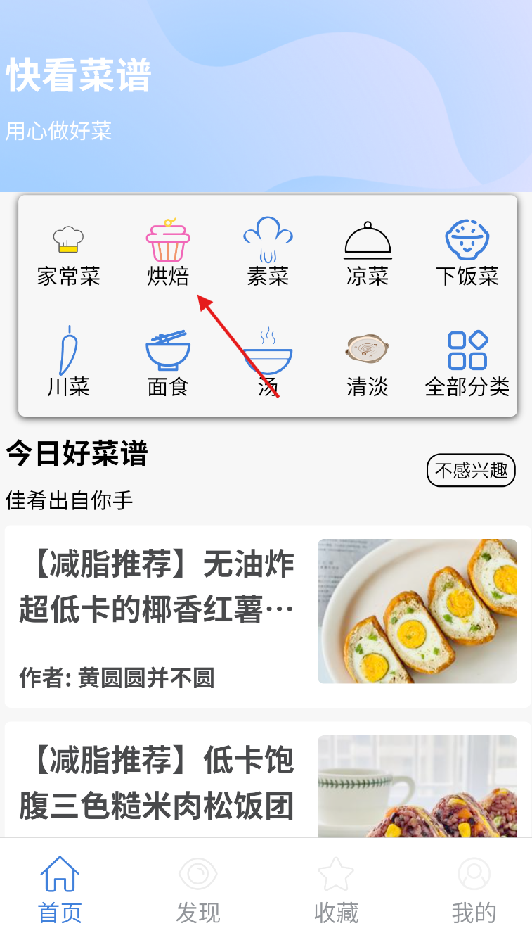 3、菜谱查找:通过首页分类导航、搜索栏或筛选条件查找心仪菜谱,也可查看智能推荐内容。