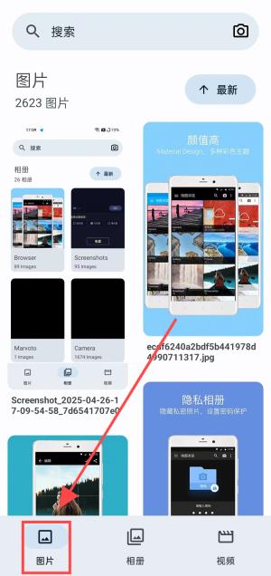 1、选择目标文件夹浏览内容通过智能分类系统快速定位需要查看的图片或视频文件资源。