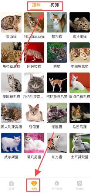 2、宠物页面可以查看各种猫咪和狗狗的生活习性。