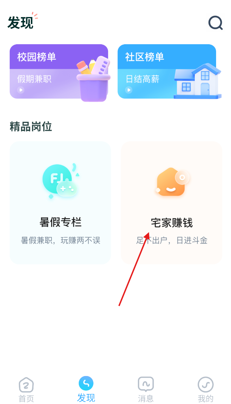 2、点击宅家赚钱。