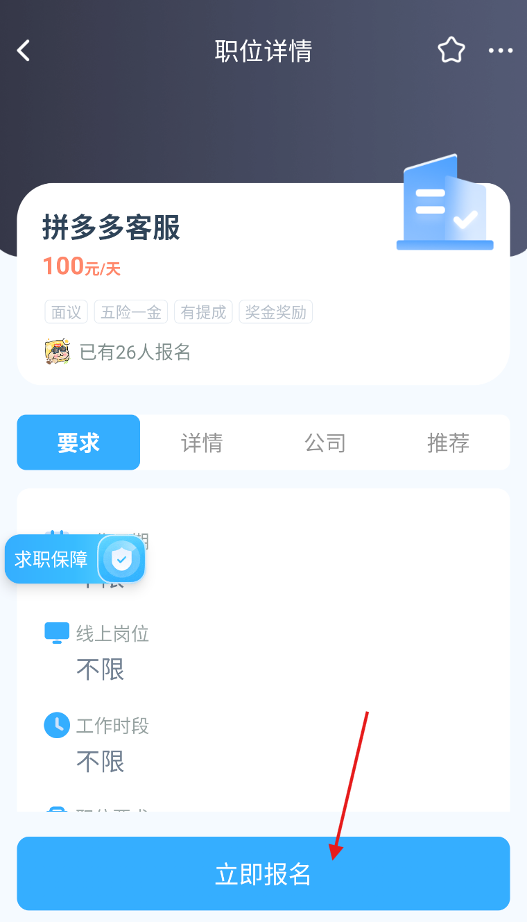 4、工作满意的话,点击立即报名即可。
