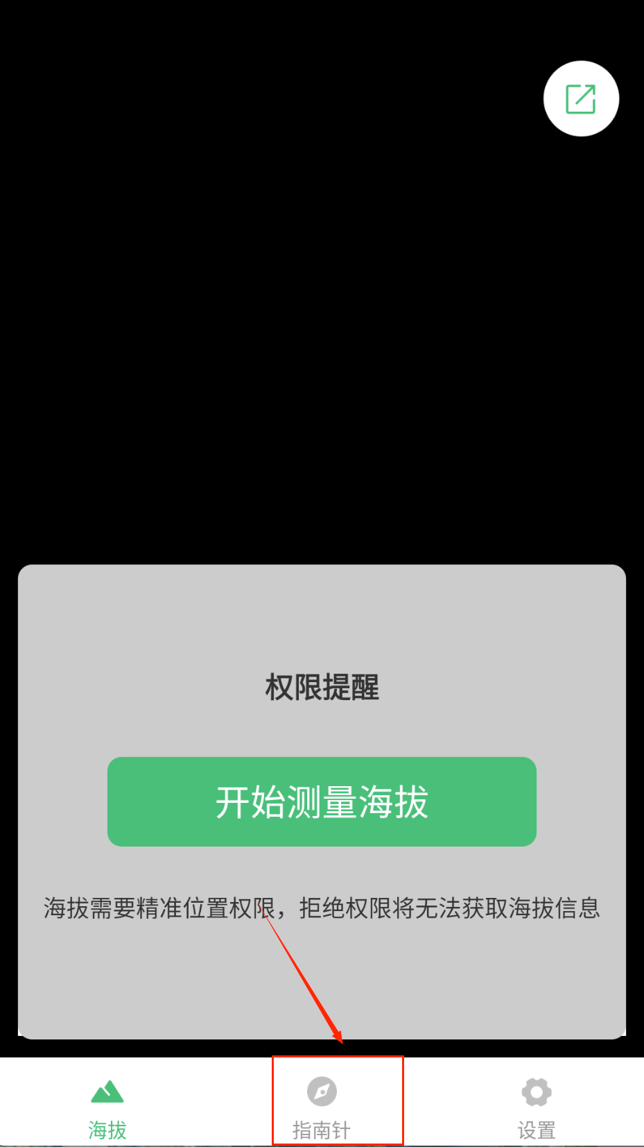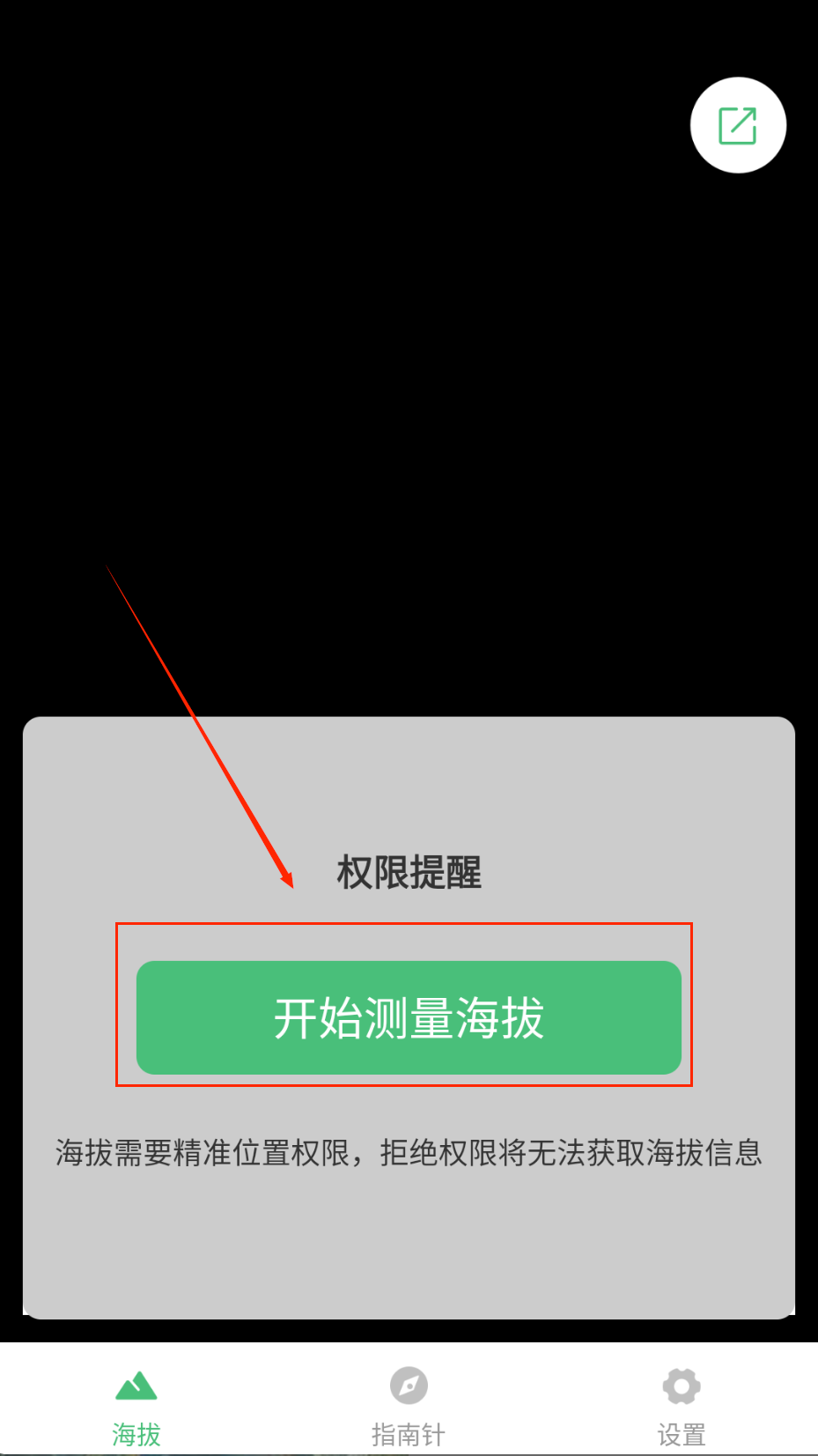 1、开启手机定位权限后进入主界面,等待GPS自动校准完成即可查看当前海拔高度。