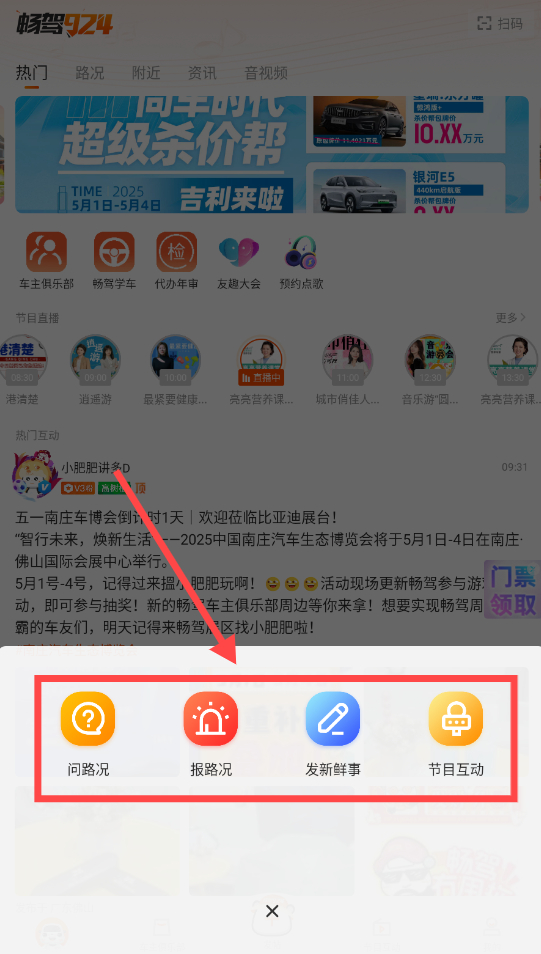 2、点击底部加号发帖,可以问路况或者报路况等。