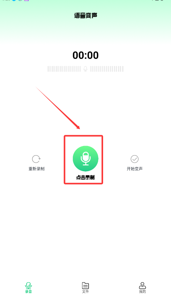 2、在“录音”界面,点击录制,开始语音变声。
