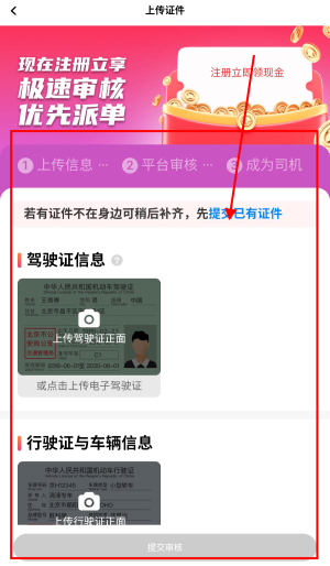 3、输入驾驶证、行驶证等信息点击“提交审核”,审核成功就可以加入了。
