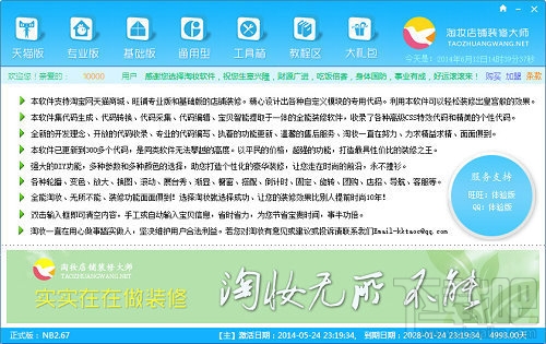 淘妆软件,又名:淘妆店铺装修大师是一款专为淘宝网店铺开发的多功能装修软件,集代码生成、采集、编辑、转换于一体全能代码生成器。完美支持天猫商城、旺铺专业版、基础版店铺的店招区、导航区、自定义模块区装修。包含但不限于宽度为全屏、990、950、790、750、190尺寸的css特效、html静态装修代码。软件已收录了各种轮播、变色、放大、展台、橱窗、搭配、团购、倒计时、旋转、悬浮、卡盘、联动、T台秀、跑马灯、排行榜、PK台、开关灯、双面换图、杂志秀、选项卡、聚划算、日历预告、心形、旋转、跟随、广告、翻转、视频、手风琴、百叶窗、留言板、分隔条、公告、店招、导航、页尾等等400多个特色装修代码。