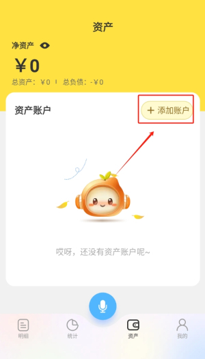3、点击右上角“添加账户”编辑资产明细。