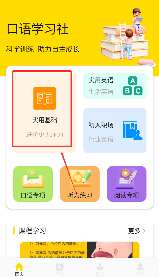 1、首页内可以选择选项进行学习。
