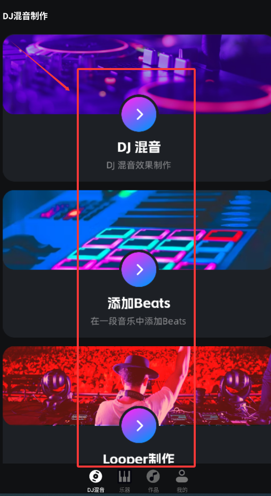2、高度还原真实打碟机操作界面,从搓盘到节奏调节均模拟硬件设备触感,让移动端用户也能享受专业DJ操控体验。