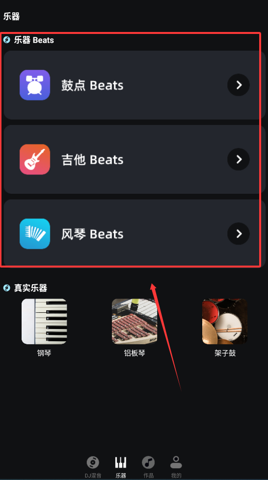 2、进入乐器页面后可以选择喜欢的乐器进行制作。