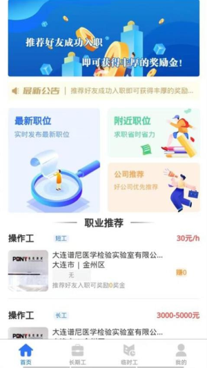 1、专注蓝领就业市场,与全国5000+家企业建立深度合作,提供真实可靠岗位。
