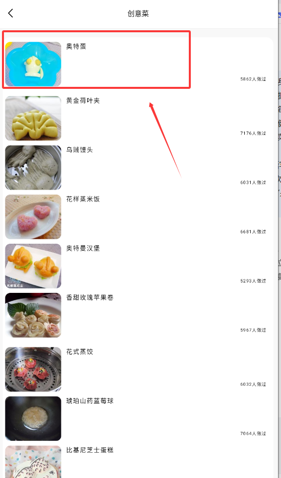 1、进入首页,可以进入菜单内看创意菜,按照选项点击进入即可有详细菜谱。