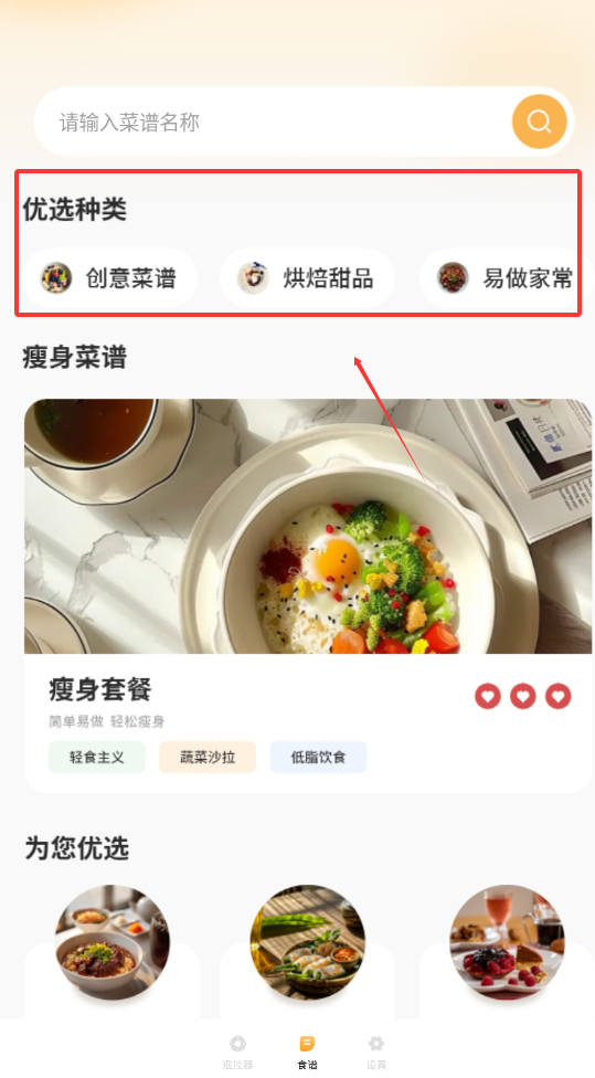 1、海量精选菜谱每日更新,涵盖家常菜,创意料理,减脂餐等多种类型,确保用户每天都能发现新鲜美味灵感。