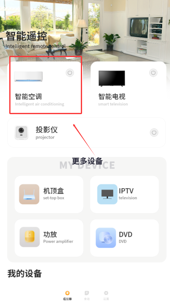 3、软件内,也有智能遥控器,按照操作对家里电器设置好即可。