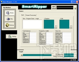 让你轻易的从DVD光碟上拷贝VOB文件到硬盘上。当你要备份DVD影片时,不管你是要将它转成特殊压缩格式或是烧录备份,若是能将DVD光盘中的影片文件事先复制到硬盘,一定比直接由光盘中读取来的快速与稳定。不过DVD影片通常都有CSS保护着,不是那么轻易就能复制,这时我们就必须依赖SmartRipper这套软件中避开CSS侦测的这项功能,才能成功的将影片文件复制到硬盘。
