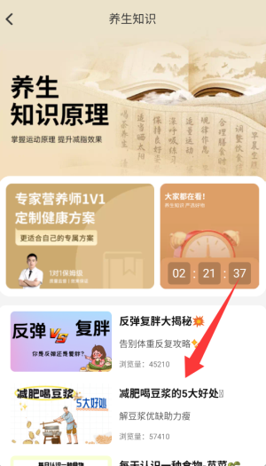 2、浏览各类养生主题文章,点击感兴趣的内容查看详情。