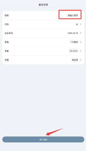 1、首次启动应用时,系统会引导用户完善个人健康档案基础信息。