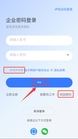 3、遇到密码忘记的情况,点击登录页面的找回密码选项就能重新设置新密码。