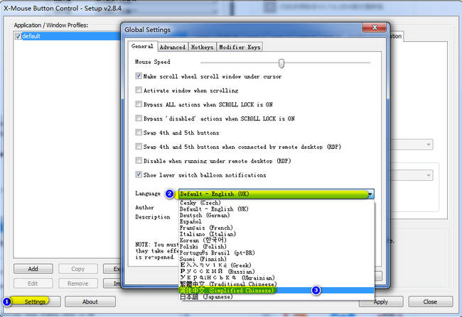 X-Mouse Button Control官方中文版设置“简体中文”的方法: