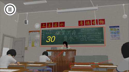 2、在教室内可点击黑板或书桌查看文字内容,寻找励志标语中的隐藏信息,帮助解开谜题推进剧情发展。