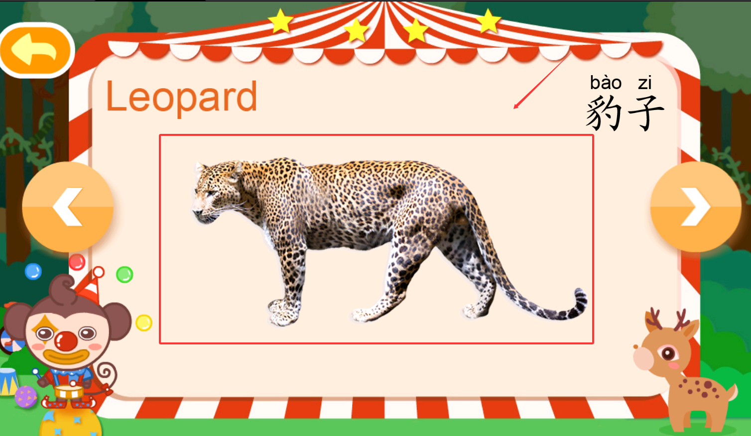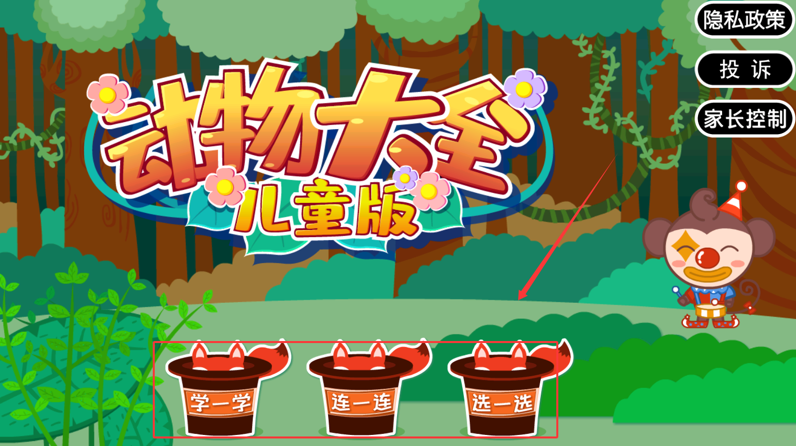 3、界面色彩明快,动物形象可爱,能牢牢吸引孩子注意力。