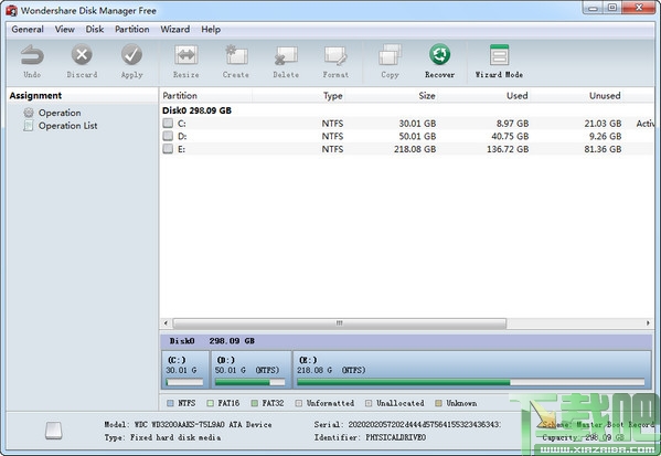 Wondershare发布的一款完全免费的磁盘分区工具,主要有分区功能和磁盘备份两方面的功能。磁盘分区管理方面,Wondershare Disk Manager支持创建分区、删除分区、调整分区大小、复制分区、恢复分区、FAT/NTFS互转换、隐藏分区、格式化分区等常规操作;磁盘备份则可创建磁盘的完整副本。