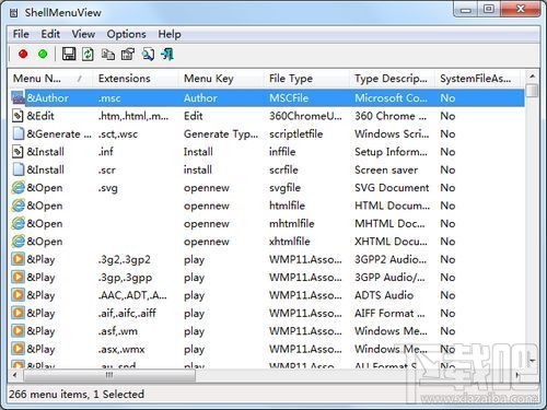 在ShellMenuView主窗口中会显示菜单项列表。你可以选择一个或多个菜单项,并启用或禁用它们。您还可以设置或删除菜单项扩展模式。当菜单项在扩展模式下,该菜单项只会在您打开文件的上下文菜单并按下Shift键时才会显示。