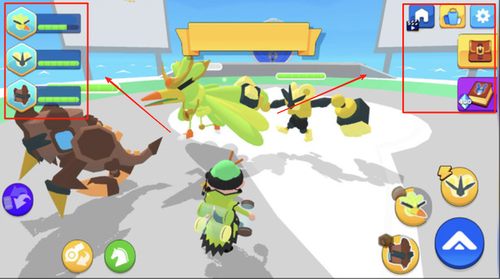 2、操作不同精灵组成战斗阵容,在紧张刺激的战场中逐一击败对手获取资源,同时也能稳步提升自身实力。