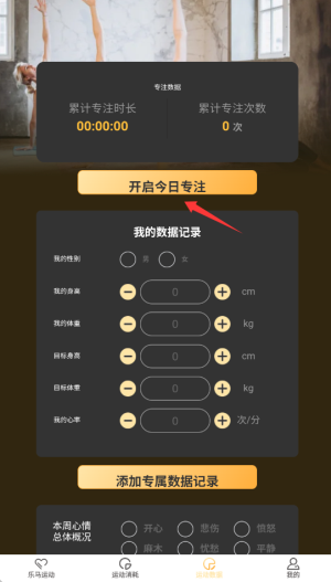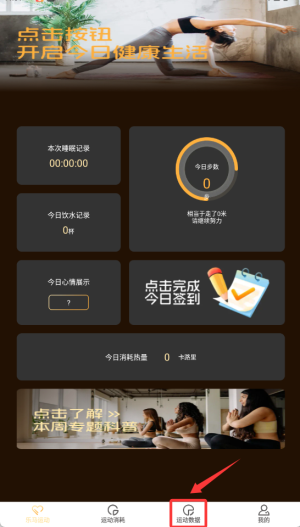 1、进入乐马运动APP后,在首页选择"运动数据"板块,查看当前运动数据统计。