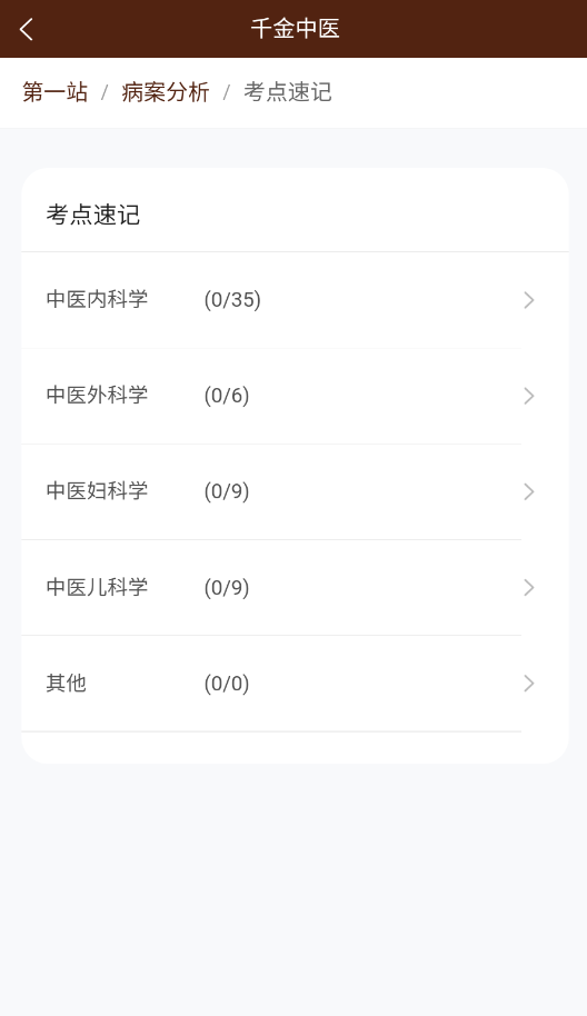 3、进入"考点速记"栏目即可开始系统学习中医基础理论和临床要点知识。