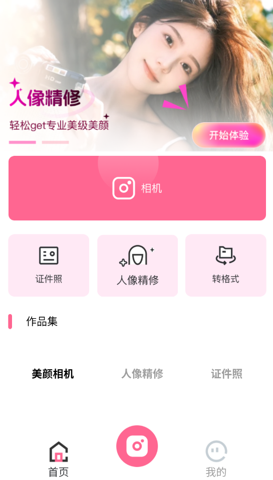 1、启动AI美效相机APP后,点击首页"人像精修"功能按钮进入编辑界面。