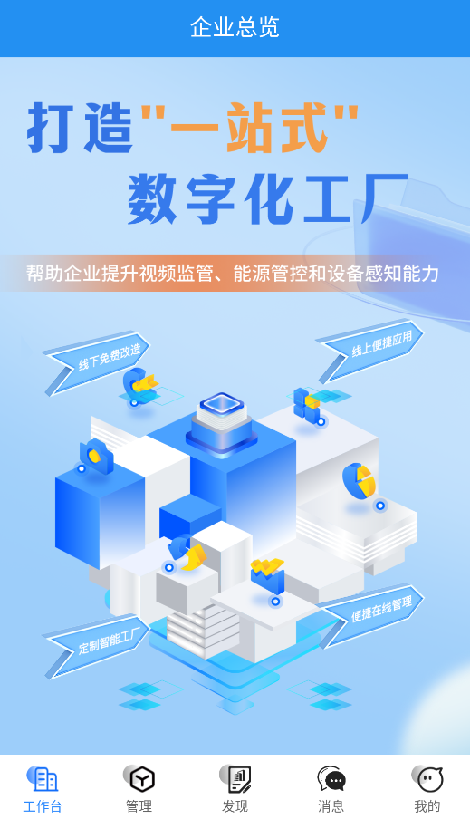 1、启动易企改APP后,首页"工作台"集中展示待办事项、审批流程等核心办公功能。