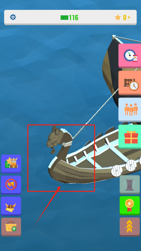 3、点红箭头指的船头龙头,可以给战船升级,让它开得更快更强。