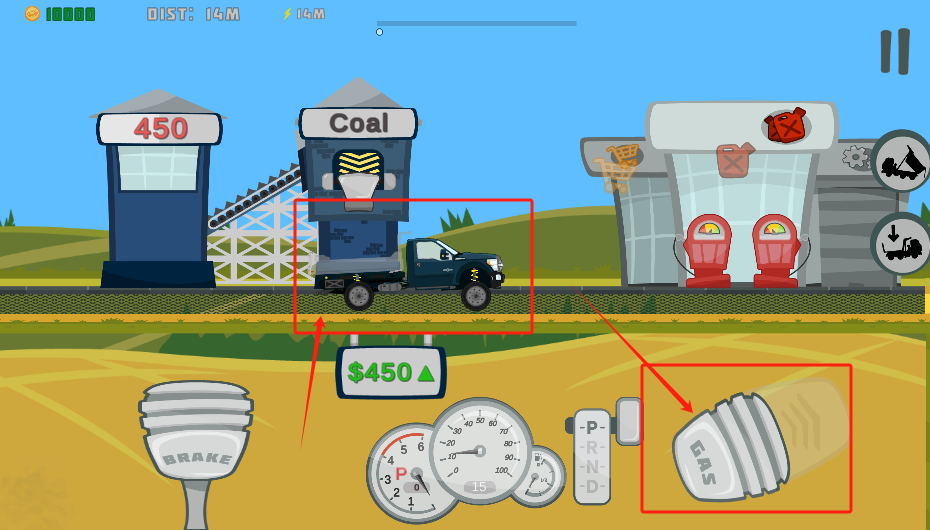 3、用右边按钮控制卡车前进,注意油量表别开到没油。