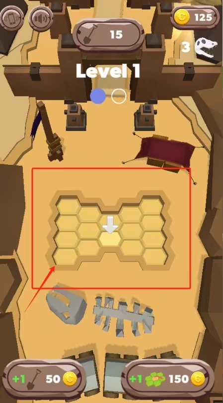 3、有15把锤子能用,齿轮和金币可以买道具,箭头提示往下走。