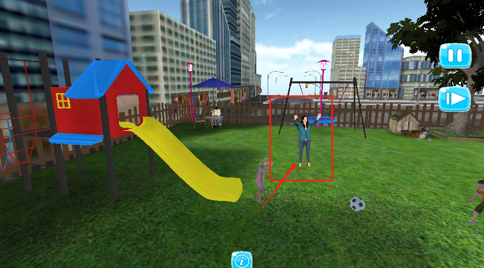 3、是游戏里的户外场景,可以控制角色在滑梯和房子旁边玩耍。