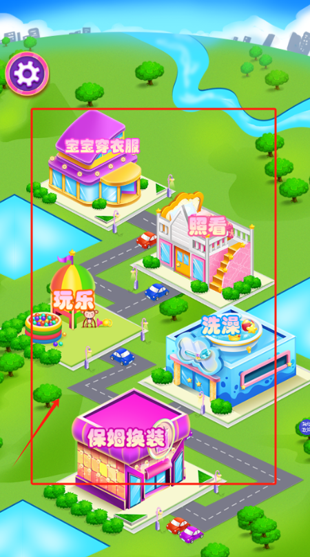 2、选红色框里的洗澡房子,进入给宝宝洗澡的小游戏。
