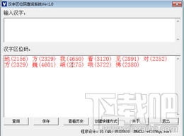 1.在网上找了一下,几乎没找到好用的汉字区位码查询软件!所以动手写了一个,以方便大家,可以批量查询,无字数限制,可以自动保存查询结果!2.本程序的《汉字区位码表》来自网络,但可信度比较高,下载于高校网站,但无法排除错误!